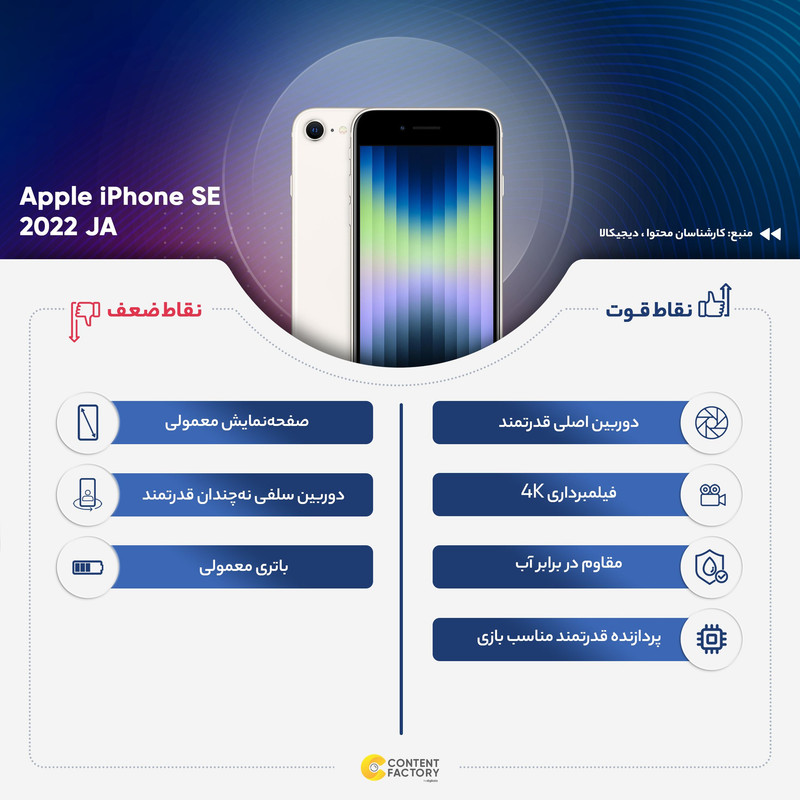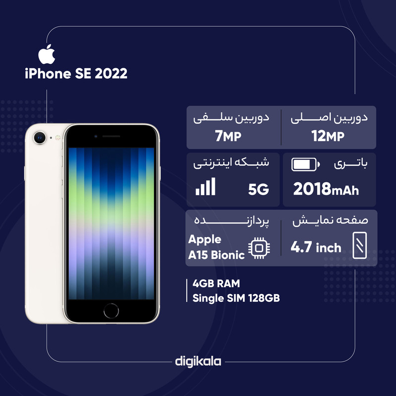 گوشی موبایل اپل مدل iPhone SE 2022 JA تک سیم کارت ظرفیت 128 گیگابایت و رم 4 گیگابایت